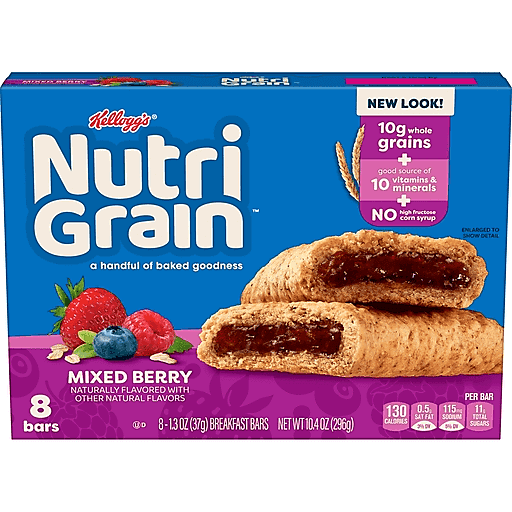 Nutri-Grain breakfast bars are your go-to for a handful of baked goodness! Made with 10g of whole grains, these deliciously simple bars help empower the whole family to win the day. They’re made with a tasty, chewy crust that holds yummy, sweet mixed berry-flavored filling inside. Each breakfast bar contains 10 vitamins and minerals per serving, including a good source of calcium and iron, and has no high fructose corn syrup; Grab one in the morning, as an afternoon snack, or on the go. With delicious flavor and feel-good ingredients, they’re a wholesome snack for any time of day. Pack these portable snacks for the bus on the way to school, add a few bars to your work bag for an office snack, and stock your pantry for convenient, crave-worthy snacks for the whole family. Grab a bar for flavorful energy matched up with an irresistible taste that everyone loves. With these perfectly baked snack bars, you’ll be prepared for whatever the day brings.
