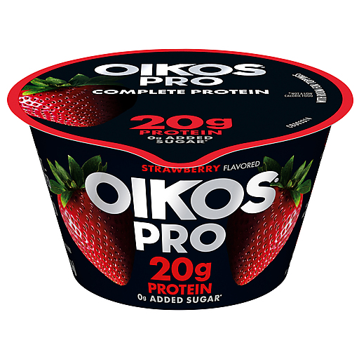 Go Pro with Oikos Pro Strawberry Yogurt-Cultured Ultra-Filtered Milk Product, the spoonable high protein snack with more of what you want, and less of what you don’t. Every serving contains 0g added sugar* and nine essential amino acids, in addition to vitamin D and calcium for strong bones. Each Oikos Pro snack cup packs a punch with 20g of protein per serving, so you can always have dependable, high protein snacks to help you add more protein to your day. Because when you feel strong, you are unstoppable. With protein and deliciousness, these snacks for adults can help you strive to reach your potential with every serving. Protein is important - an essential nutrient that we need in our diet - and Oikos Pro cups are great tasting, convenient solutions for adding complete protein every day. Pack a strawberry snack cup for days that start at a sprint and enjoy a delicious boost of protein at lunch. Each snack cup leaves room for toppings, so throw in your favorite fruit for an extra refreshing snack. Need 0g added sugar,* 0 artificial sweeteners, and 0% fat? Try Oikos Triple Zero with 15g of protein per serving. Want the creamy one with the fruit pieces? Oikos Blended has you covered. Oikos — Stronger Makes Everything Better (R). *Not a low-calorie food.
